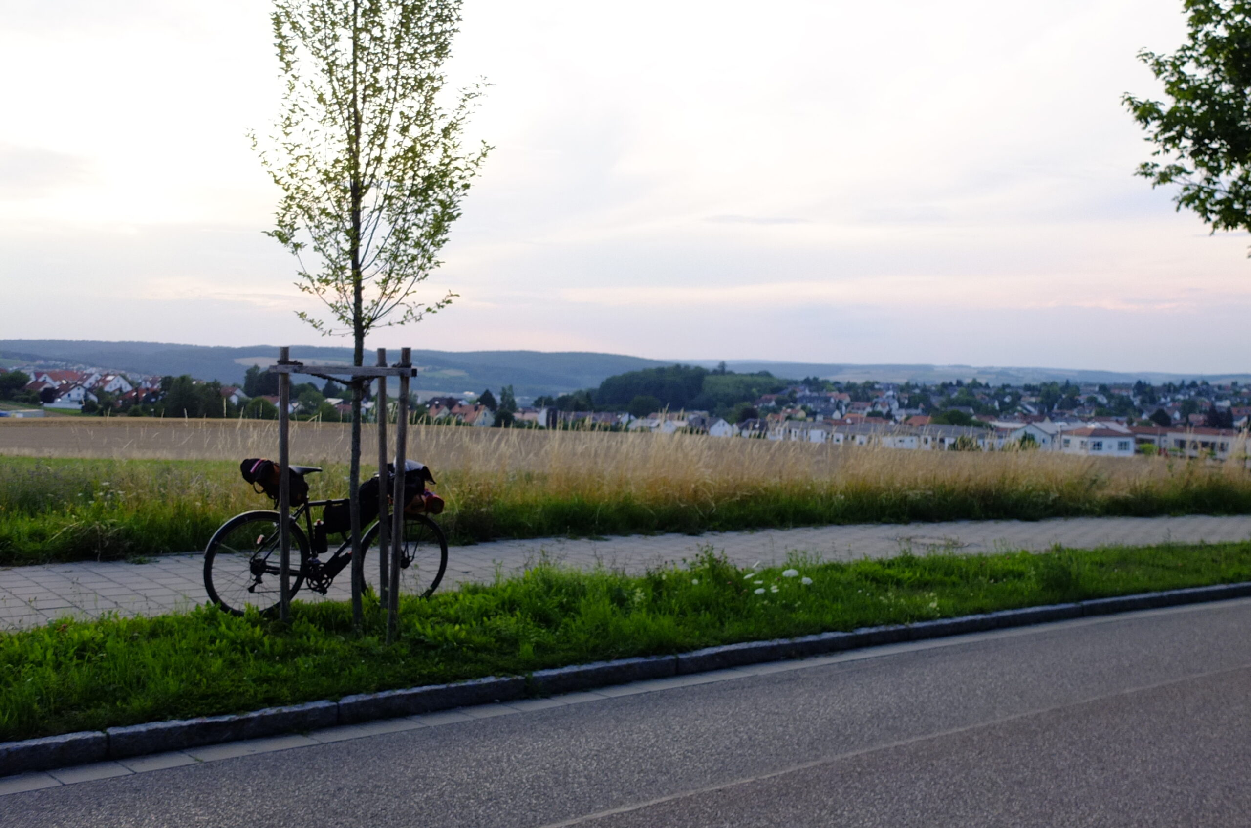 Ich habe einen leichten Schwips, als ich wieder auf mein Rad steige. Auf zur Schlafstätte. Wo auch immer die sein mag. Mein Blick schweift durch die Landschaft links und rechts meines Weges. Ich erkenne nichts geeignetes. Viele Grundstücke sind umzäunt. Hinter den meisten Mauern kläffen Wachhunde. Bei der unsicheren Wetterlage wäre ein Dach über dem Schlafsack schon einigermaßen sinnvoll.