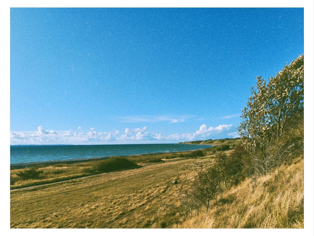 Die Pizza ist lediglich in Ordnung, aber das stört mich nicht. Ich freue mich vor allem über ein voll geladenes Handy und einen vollen Bauch. Nach einer gefühlten halben Stunde Pause schwinge ich mich wieder aufs Rad. Ich hab einen shelter rausgesucht, für den es sich lohnen wird noch ein paar Stunden Stoff zu geben. Mit der Ostsee im Sichtfeld trete ich weiter und weiter. Zum Glück habe ich gute Beine heute. Landschaftlich kickt das alles auch hier. Hinter jedem Hügel ein neuer schöner Ausblick.