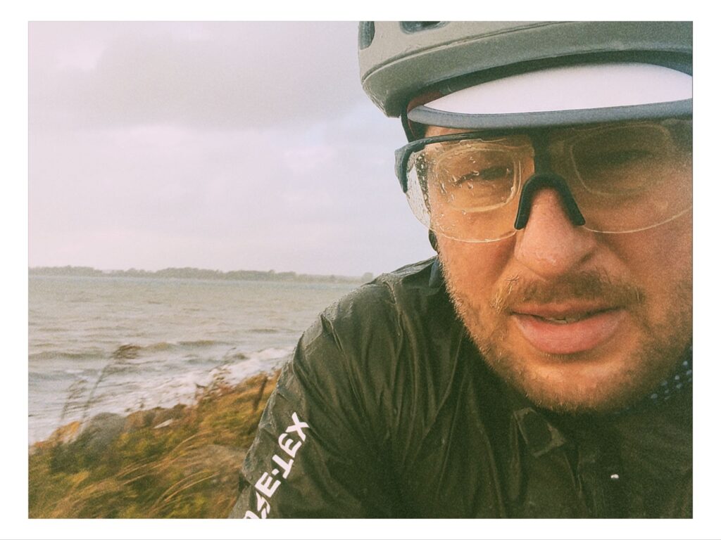 Auf Lolland fahre ich ein paar Meter auf dem Deich um mich an der erstbesten Sitzgelegenheit umzuziehen. Ursprünglich wollte auf der Toilette der aufFähre von Freizeit- zu Radkleidung wechseln. Der hygienische Zustand dieser hatte mich dann aber doch davon abgehalten. Herbstlicher Wind und Sonnenschein begrüßen mich am Deich und ich beginne mit den ersten Kilometern. Links die Ostsee, rechts von mir flaches Land. Irgendwie fühle ich mich als wäre ich aufs Rad gefallen. Ich brauche wohl noch eine Weile bis ich „angekommen“ bin.