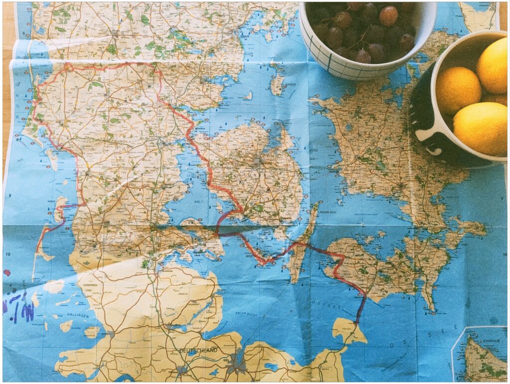 Was ist überhaupt der Plan? Offensichtlich Fahrrad fahren und anscheinend auch draußen schlafen. Ich werde am Freitagabend in München in den ICE steigen, um morgens in Hamburg anzukommen. (Hoffentlich schaffe ich es dabei etwas zu schlafen.) Von Hamburg geht es weiter mit dem Nahverkehr bis nach Fehmarn. Mit der Fähre geht es nach Dänemark auf die Insel Lolland. Dort steige ich aufs Rad und starte meine Tour. Die geht grob gesagt von Osten nach Westen. Dabei habe ich vor in spätestens sieben Tagen in Sylt in den Zug zu steigen, um über Hamburg zurück nach München zu fahren. Die Plätze im Zug habe ich vor sagenhaften 6 Monaten gebucht und darum auch nur 100 Euro bezahlt. Daher auch diese bestimmten Rahmenbedingungen.