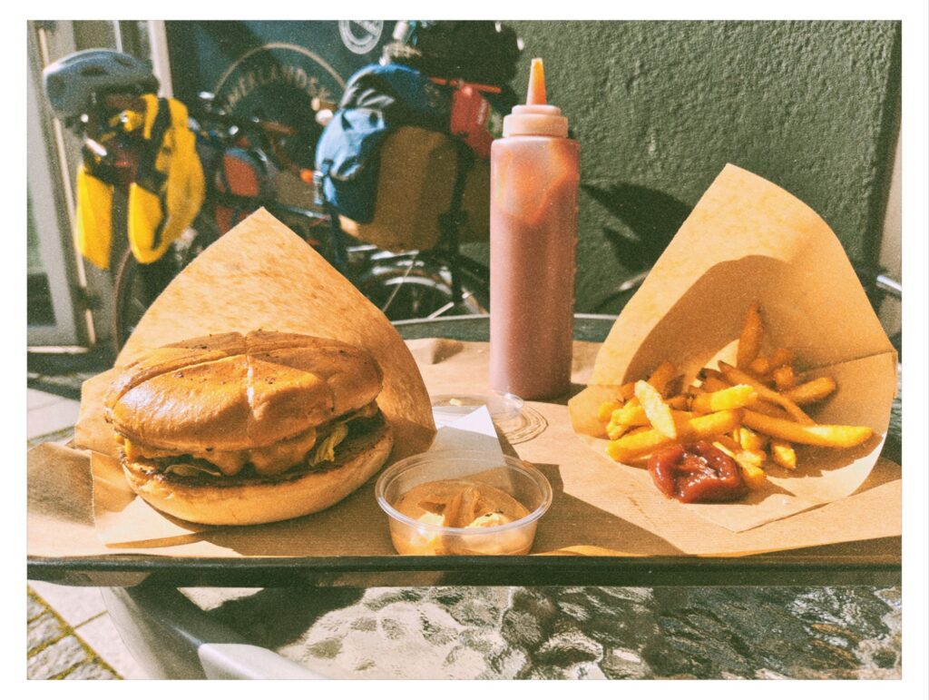 Einmal am Tag gönne ich mir ein warmes Essen. Der Mensch lebt nicht von Fruchtquetschies, Nussmischungen, Lakritze und Haribo allein. Heute darf es auch ein Cheeseburger in der ansehnlichen Innenstadt von Vejle sein.
