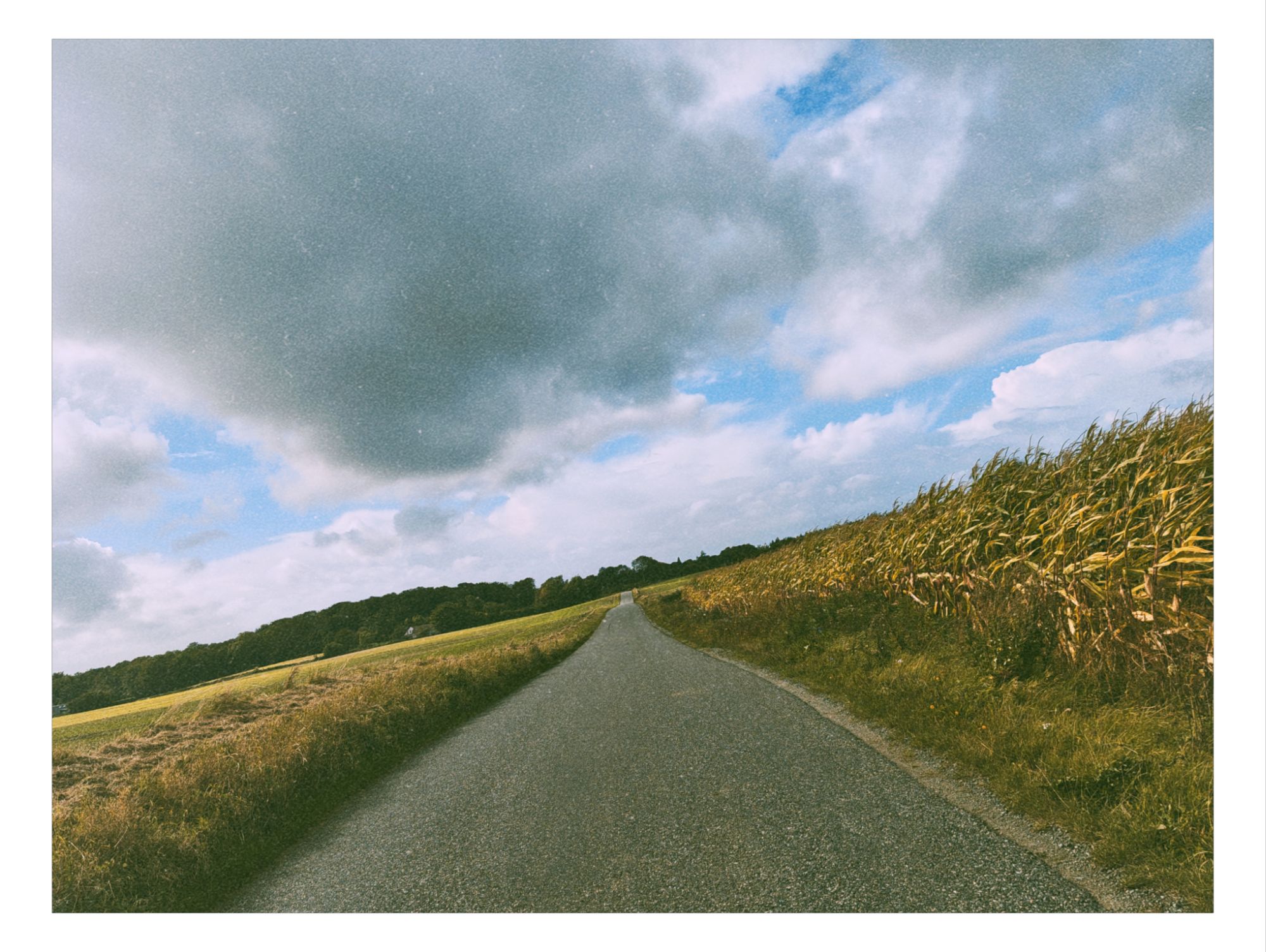 Also geht das Geschrubbe los . Ich will aufholen, was aufzuholen gilt. Motiviert trete ich durch die abwechslungsreiche Landschaft. Das Wetter ist viel weniger gruselig ,als die Wetterkarte es prophezeit hatte. Die Wolken lassen immer wieder mal den blauen Himmel durchblicken und wenn es mal regnet, regnet es zwar heftig. aber dafür nur kurz. Damit kann ich leben. Nicht alles, was unerwartet passiert, ist schlecht. Lediglich der Wind erweist sich als zäher Gegner. Immer häufiger tendiert meine Reiserichtung gegen die Windrichtung. Passagen, in denen ich ziemlich drücken muss, um gefühlt trotzdem kaum vom Fleck zu kommen.